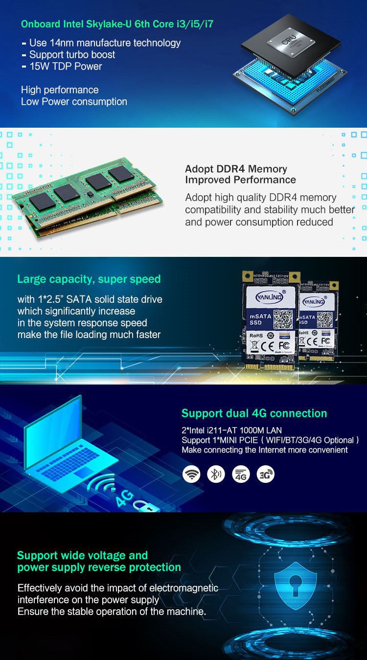 ◇ תמיכה ב-1*M.2 וב-1*חריץ מיני PCIE 【תמיכה כפולה ב-4G】;